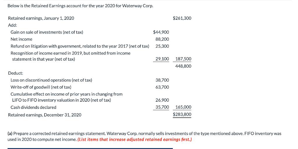 One year of negative retained earnings does not signal a company in complete poor financial health but if retained earnings have consistently been negative then a company has not been able to. Common Stock par value 10 authorized 500000 shares. Which one of the following statements regarding dividends is correct.